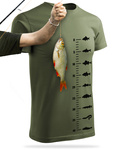 Wędkarska koszulka T-shirt kolor zieleń wojskowa nadruk MIARKA DO MIERZENIA RYB
