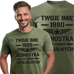 ( ilość produktów: 20 )Koszulka T-shirt nadruk JEDNOSTKA SPECJALNA + IMIĘ I DATA URODZENIA