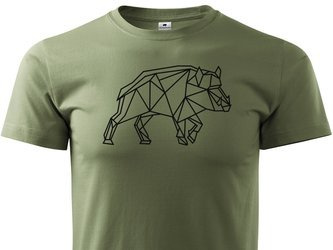 Koszulka T-shirt z myśliwskim nadrukiem geometrycznym Dzik