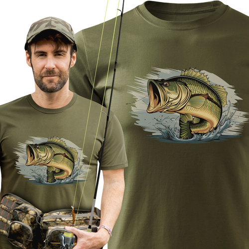 Wędkarska koszulka kolor zieleń wojskowa duży nadruk - SZCZUPAK wz. D14
