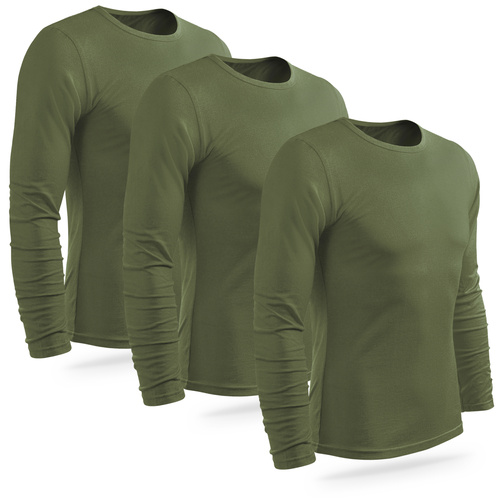 Zestaw 3 sztuk bawełnianych koszulek z długim rękawem - kolor khaki