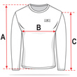 A - długość / B - szerokość pod pachami / C - długość rękawka