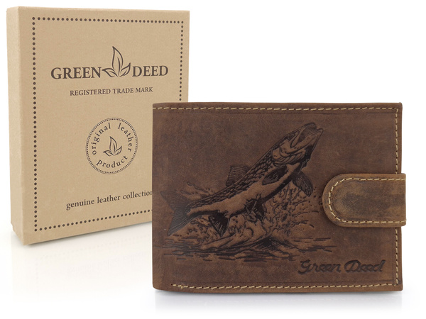 Klasyczny męski portfel skórzany z tłoczonym motywem szczupaka.