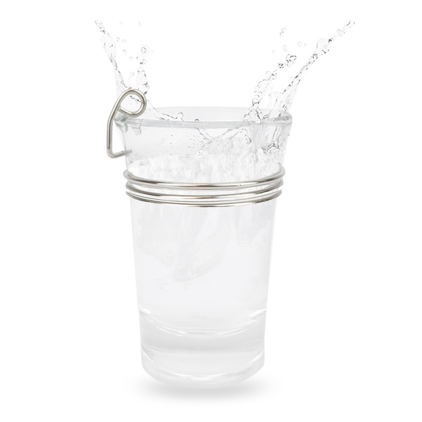 - Kieliszek szklany z metalową, zdejmowaną przywieszką do zamocowania na smyczy lub łańcuszku. Znakomity gadżet na ryby lub polowanie.